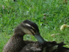 "Gee Willikers, this mornin I was sittin in a tiny cage with a bunch of chickens, in the hot, hot sun. Just a little girl gosling without a name. All I had to drink was some old rusty water in an old rusty can, not enough water to wet one single webbed toe! Those chickens were poopin all over the place. It was awful dirty and stinky and crowded in that cage and I was feeling pretty, darn glum. But then, this lady appeared, she looked at me and asked that old feller that stuck me in the cage, 'Is that a female?' 'Nope, the old feller says, 'Its a boy'.'Hm- mm.. she sighed, looking perplexed. 'I was looking for a female. How old is he?' 'About 4 weeks old', said the old feller. 'Hm-mm, I was looking for someone a bit older. How much?' '$10', says Mr Old man. The lady looked me over, 'Poor little guy, she says. 'I"ll take him'. The old feller put me in a gunny sack, I didn't like it, I cried and cried. But the lady spoke softly to me, 'Don't worry little gosling, you are going to be just fine. I am taking you to a wonderful home, where you can splash and play the live, long day. And we will give you a fine new name, and you will have a lot of new pals.' I still cried,..what if the new pals were chickens,,,, what if she named me Gus or Jimmy??!! Me being a girl and all. What if I have to live in this gunny sack?